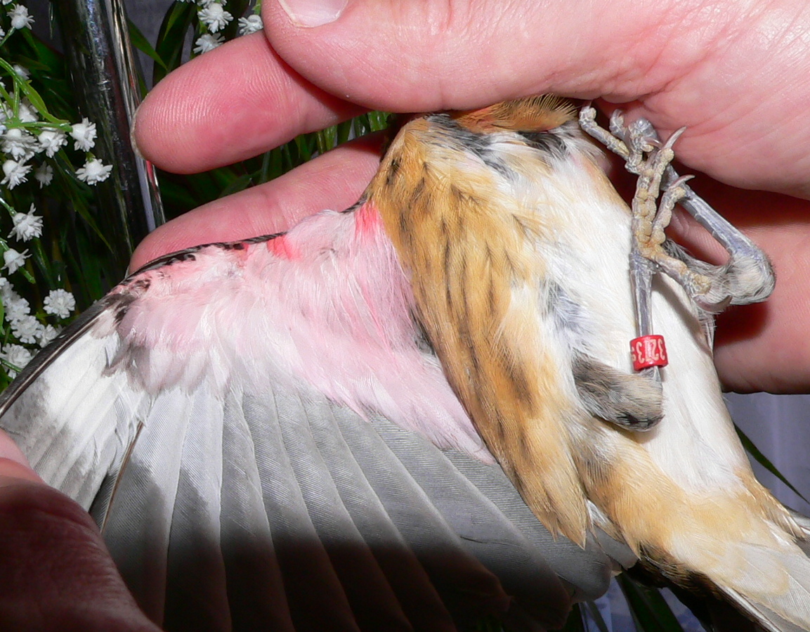 Поскольку мои познания по этому виду были предельно скромны, я с ним согласился. Только проверил кольцо, предварительно удалив с него скотч телесного цвета. Это была защита от того чтобы кормящие птицы не выбросили птенцов после кольцевания,тем более кольца в этом году были яркими - красного цвета.