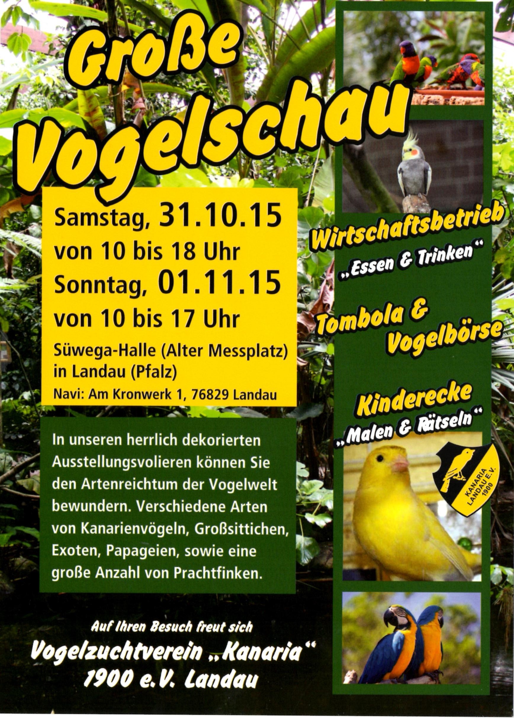 Сезон начала выставок в Германии традиционно начинается с Еврочемпионата общества AZ. Очередной , 14 -й по счету по гульдовым амадинам , а также и по другим амадиновым , кореллам, неразлучникам и волнистым попугайчикам пройдет 29 -30 августа 2015 года.