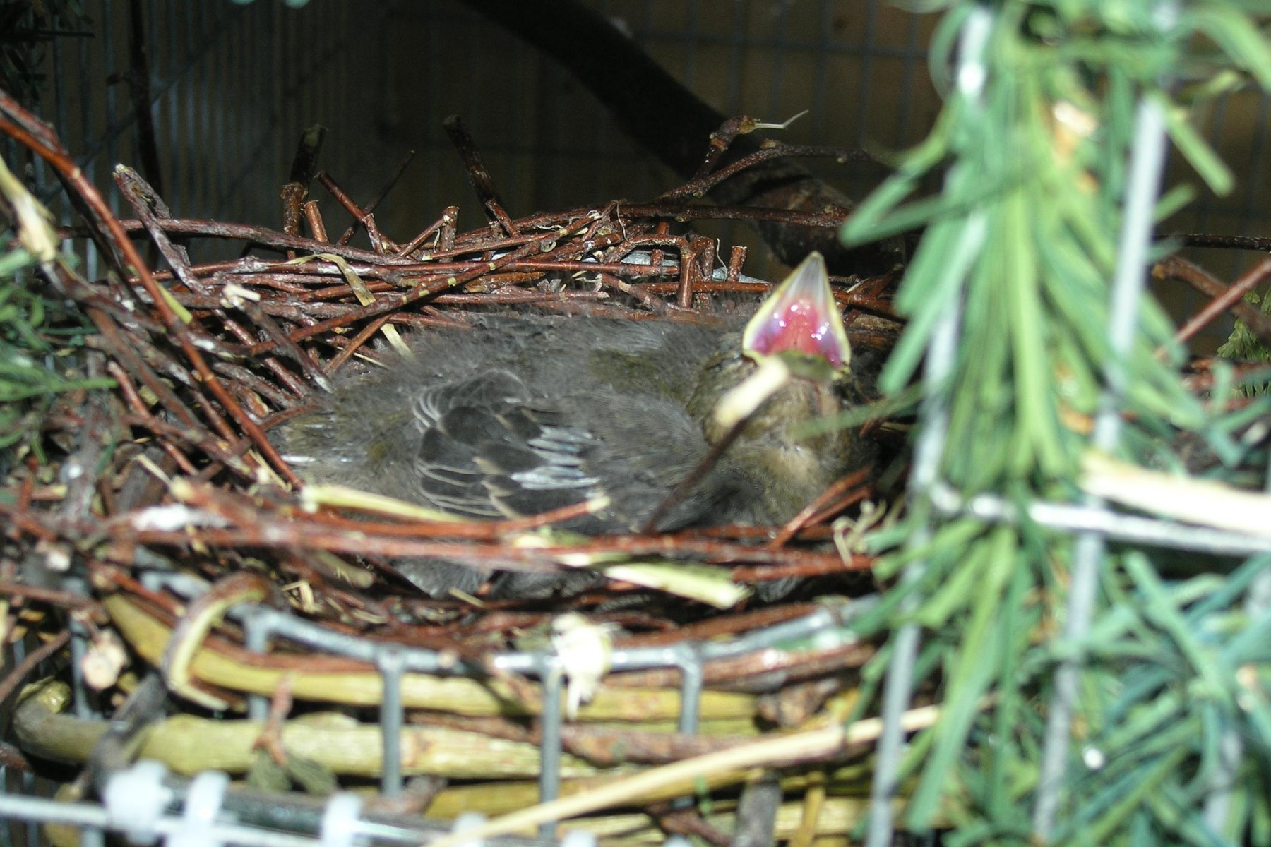 В начале мая разместил в садках гнезда, сделанные из оцинкованной сетки. Деревянный каркас гнезд сделал из длинных гибких веточек ивы в которые вплетал длинные тонкие ветки березы. Тонкие веточки березы и тонкие веточки обычного веника предложил птицам для окончательной достройки гнезда.