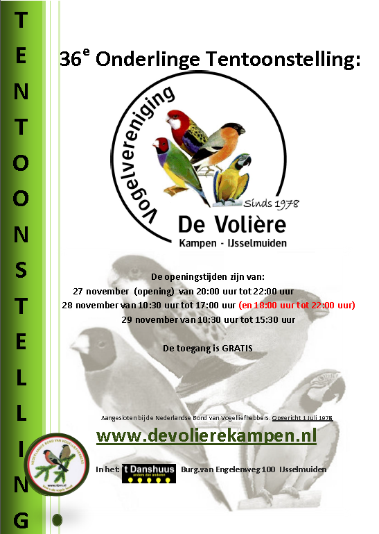 Информацию можно получить у dhr. F. Verbeek по тел.: 0493-692671 (после 17.30) или смотреть Vogelvereniging “Zang en Kleur”