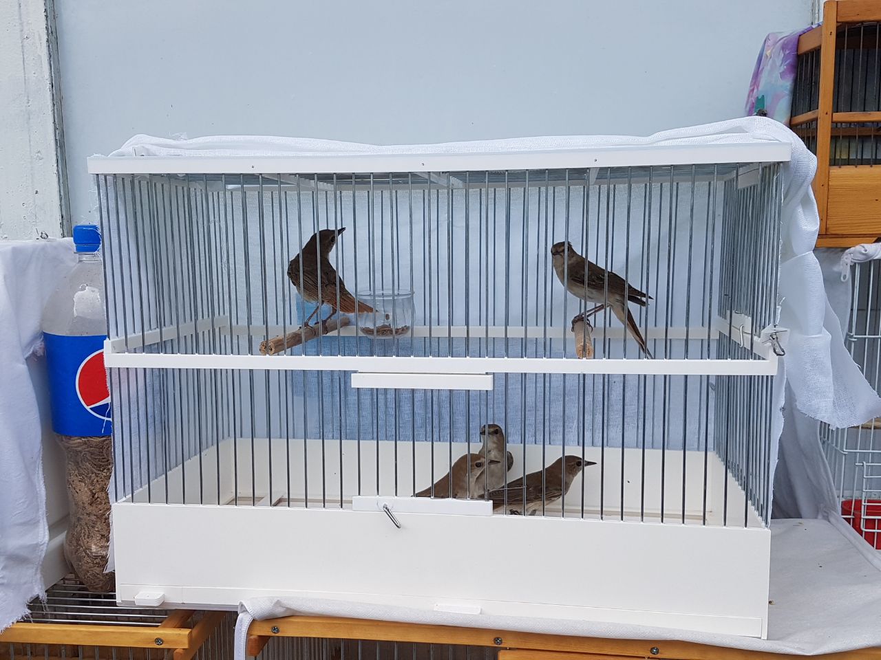 Некоторые птицы завешены аккуратными белыми шторками. Даже не покупателям люди открывали их, с удовольствием демонстрируя птиц, помогая сделать хороший кадр или видеосьемку. И это было очень приятно!