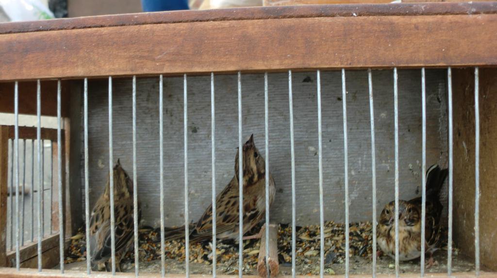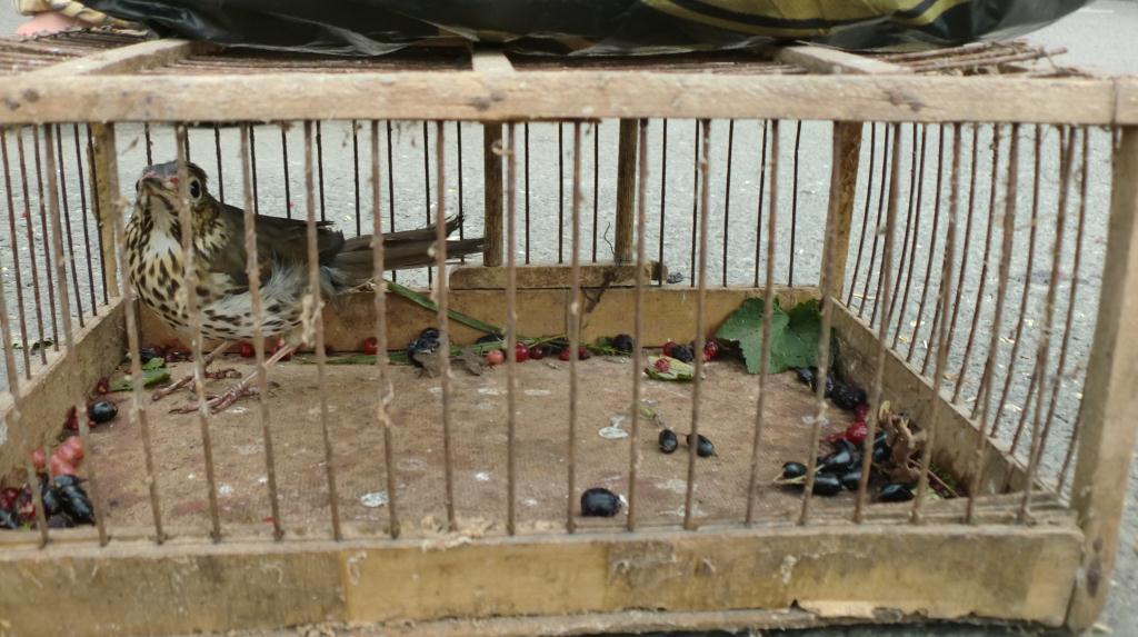 Продолжение и окончание. Певчий дрозд на верхнем крайне-правом снимке, был приобретён мной и отпущен на окраине города. Летел уверенно. На нижнем крайне-левом снимке волосатая рука не моя. :)