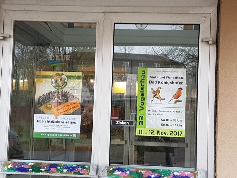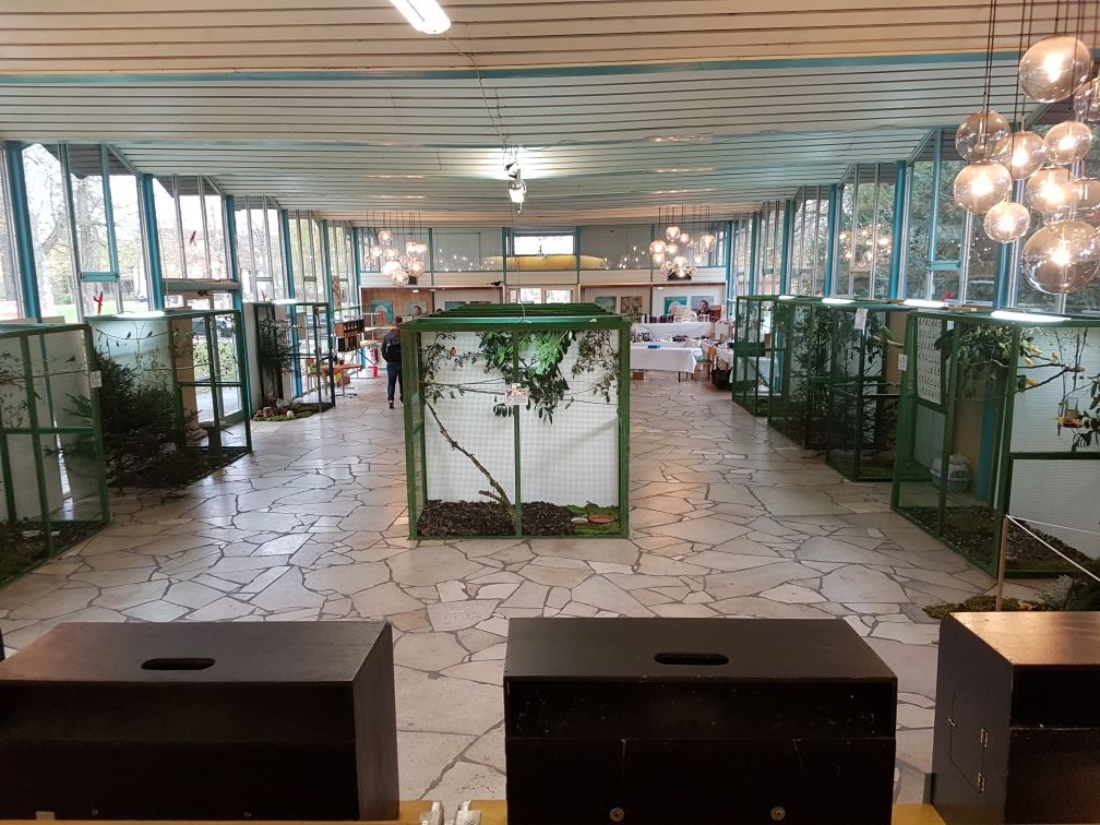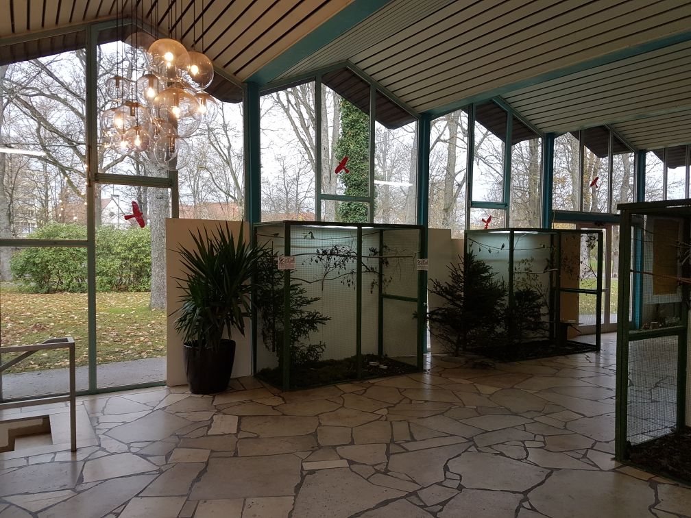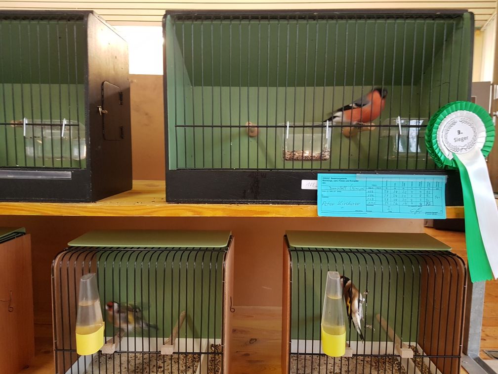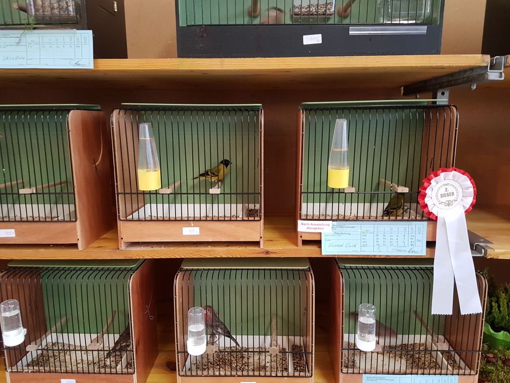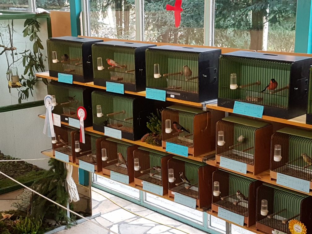 Небольшая выставка в курортном городке Bad Königshofen, но общество довольно сильное. Имеют много различных видов насекомоядных птиц. Есть и наши зерноядные - щеглы, снегири, зеленушки. Довольно редкие белошапочные шамы уже своего разведения, так же как черногрудки и гулярисы.