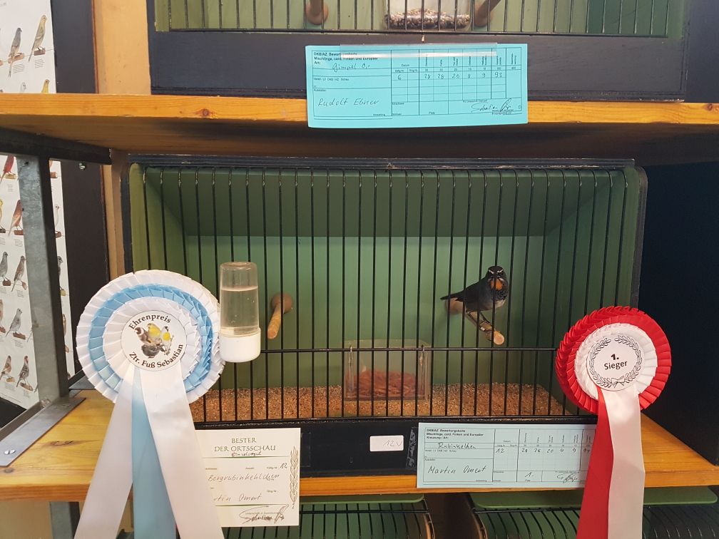 Небольшая выставка в курортном городке Bad Königshofen, но общество довольно сильное. Имеют много различных видов насекомоядных птиц. Есть и наши зерноядные - щеглы, снегири, зеленушки. Довольно редкие белошапочные шамы уже своего разведения, так же как черногрудки и гулярисы.