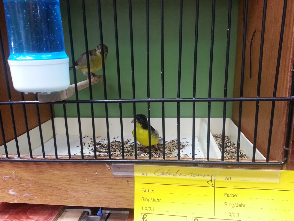 Виды птиц: тростиковые астрильды, обыкновенные чижи (мутационные)
