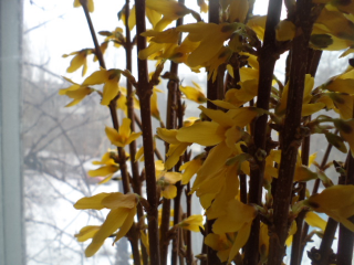 Вот расцвели мои ветки от кустов форзиции, птицы в восторге от этих цветов, съедают все под ноль.