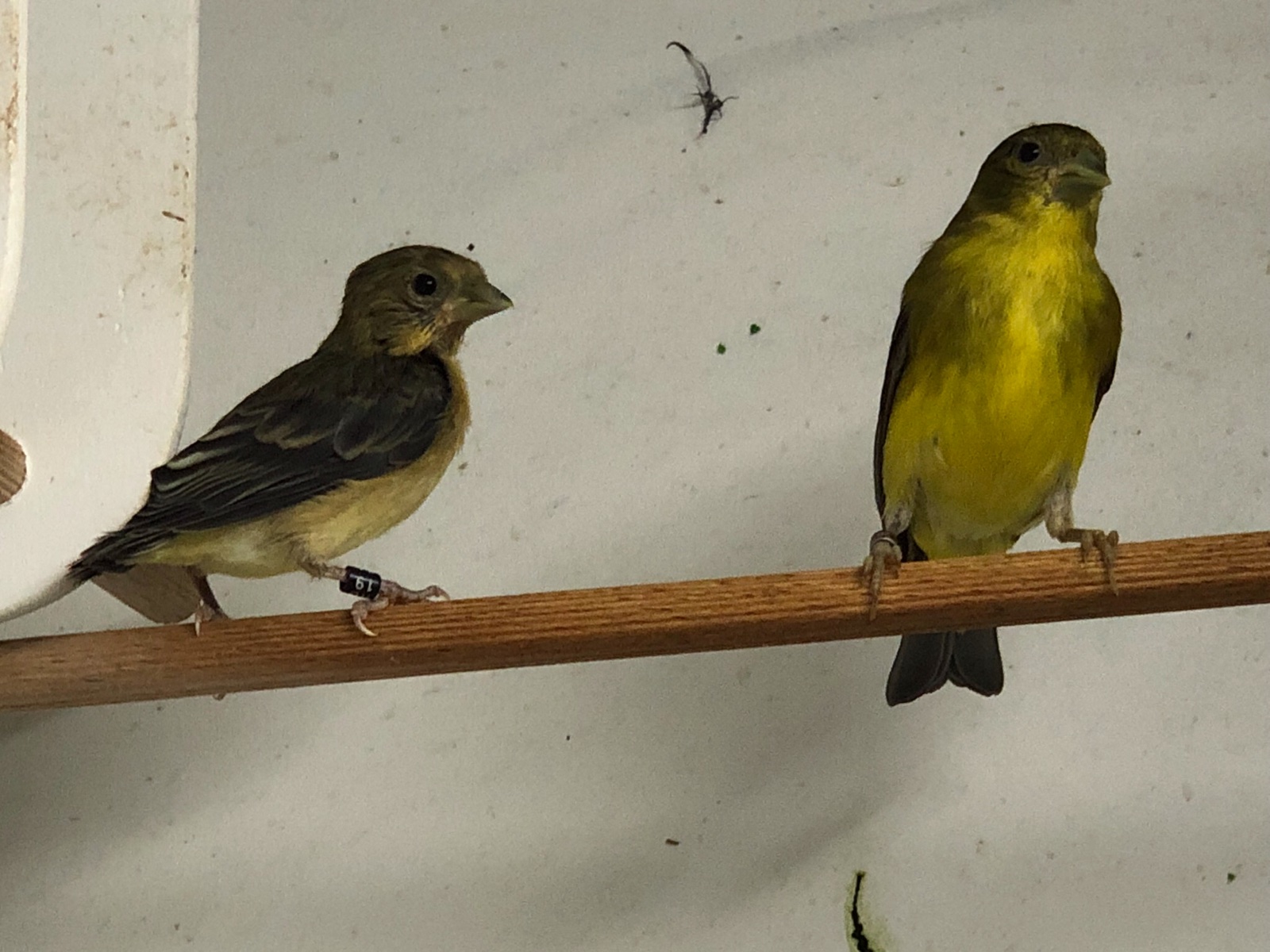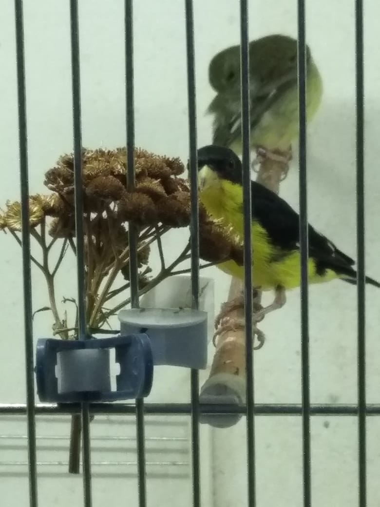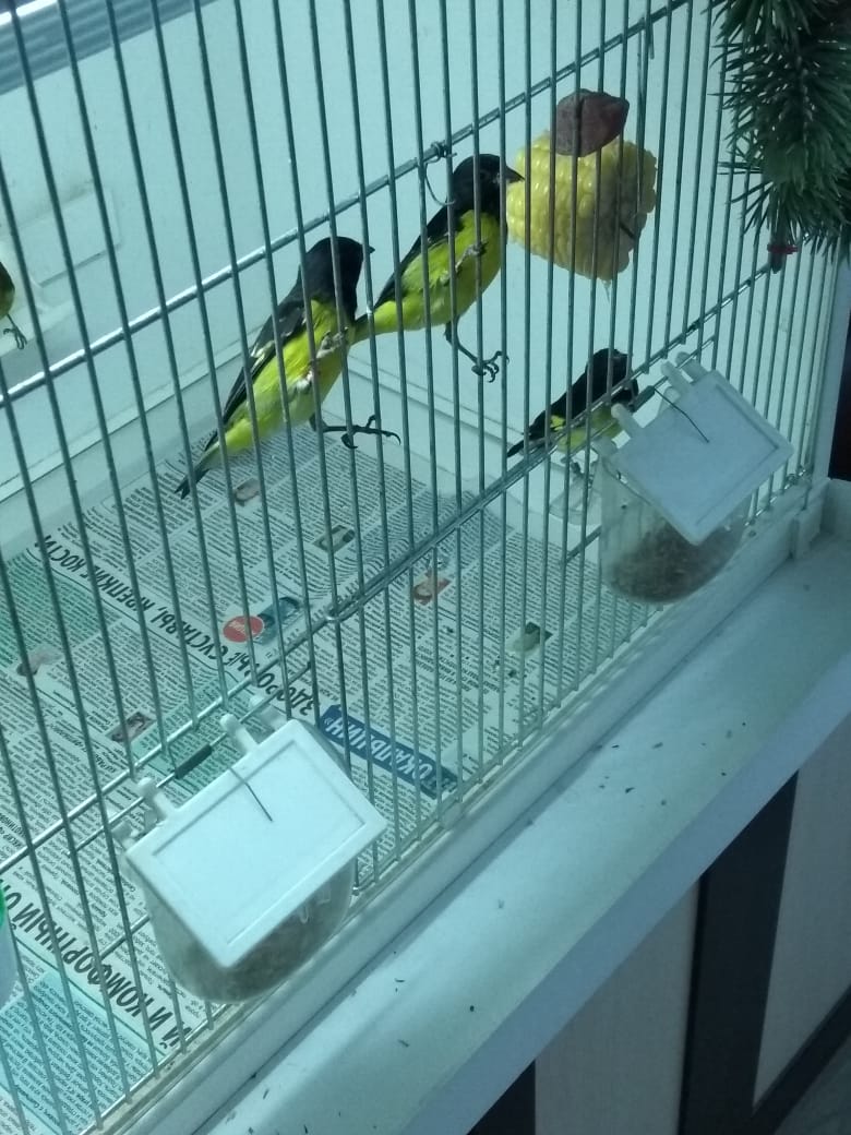 Добрый вечер! Хочу Вам показать молодую самку желтопузого чижа, если на фото не будет видно, то она очень отличается от самок мексиканцев: более круглое тело и посадка на жердочке, желтые зеркала на крыльях (у мексиканцев белые) и темный клюв.