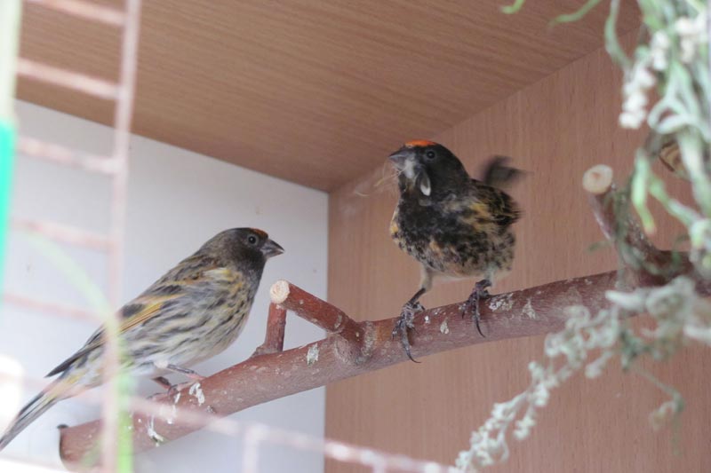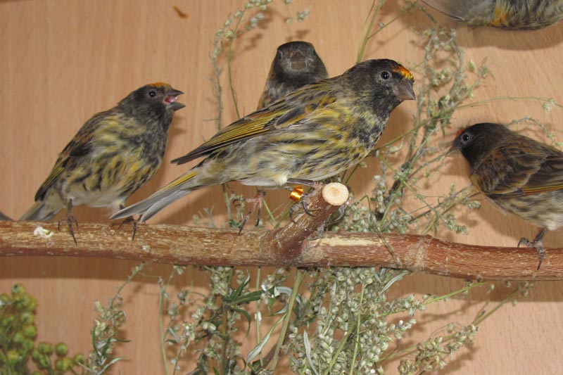 Виды птиц: тростиковые астрильды, обыкновенные чижи (мутационные)