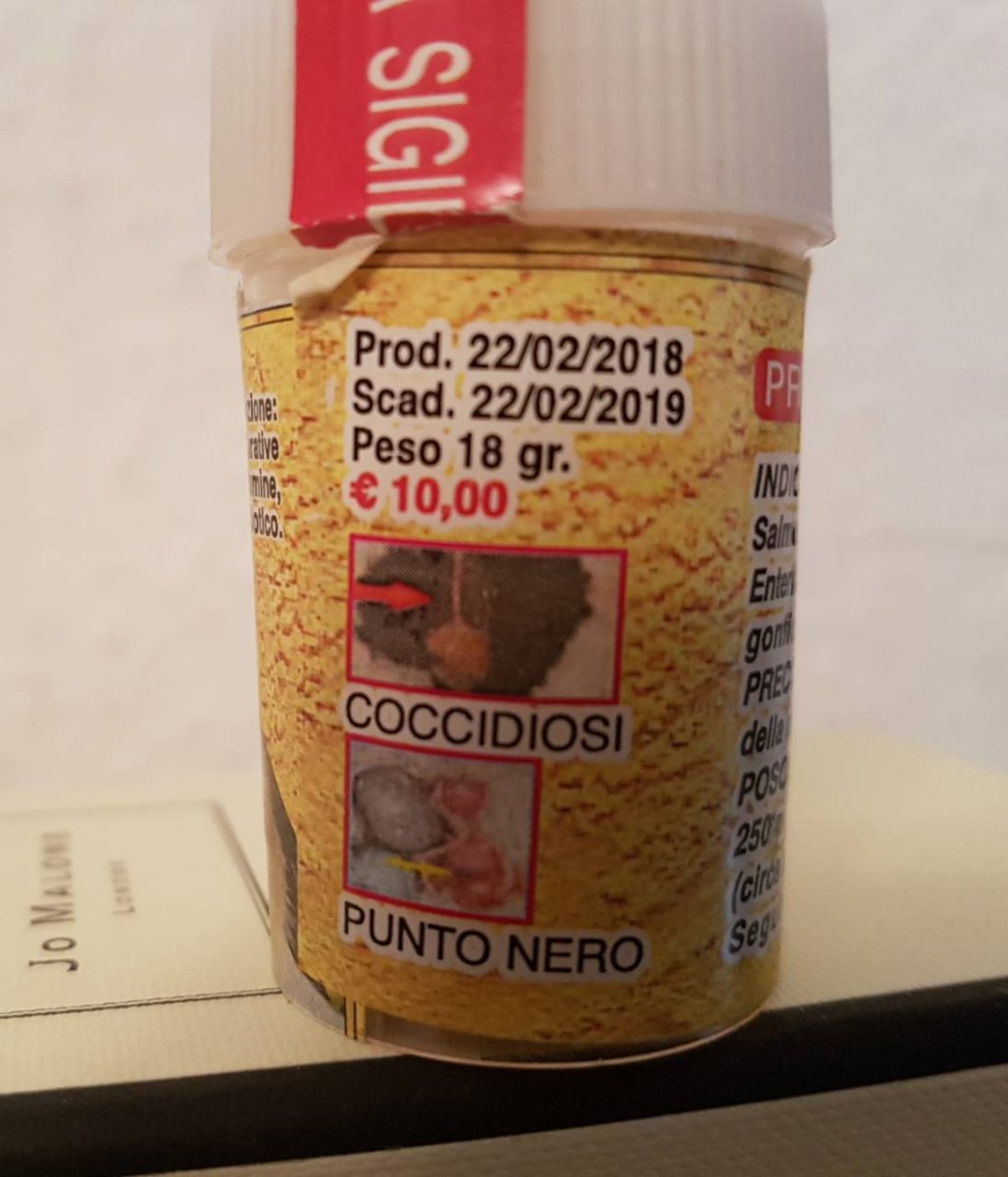 Голландцы его называют "Prodotto per Volatili". Кстати , приобреталось тоже через их сайт.Наверняка есть оно и в Италии...