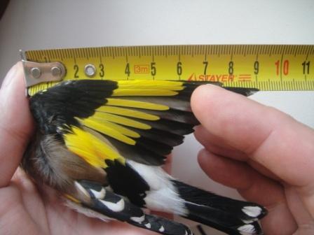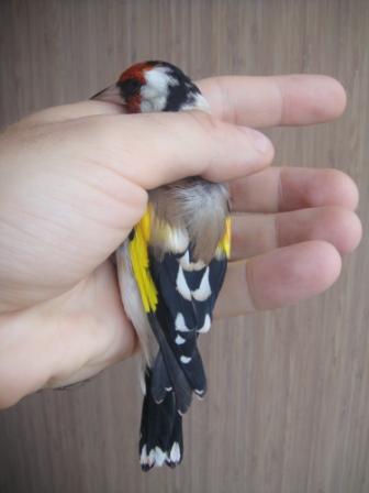хочу внести дополнение к вопросу о маерах, точнее про их исключительные размеры. пару недель назад мимоходом зацепил на ловле на границе с казахстаном несколько щеглов, не удержался и взял себе пару птичек, хотя они еще были в линьке. забрал не из-за размеров и окраса, а чтобы к сезону были готовые манные под рукой. на днях ловил посмотреть состояние и случайно решил промерить крыло у одного. оказалось наши местные степные щеглы, причем с примесью кровей седоголовых, ничем не уступают в промерах маерам, правда общая длина у самца с фото всего 153 мм.
