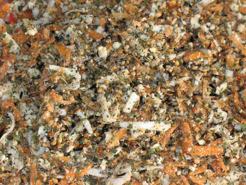 Вторая партия птиц оказалась менее требовательной и довольствовалась канареечной смесью собственного производства, с дополнительным включением все тех же семян периллы, нигера, салата и одуванчика. В короткие сроки «подсели» на дикорастущие злаковые и сорные растения.
