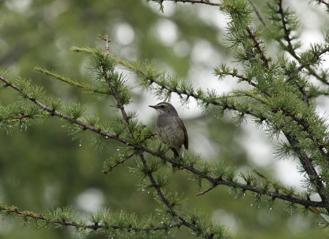 Птицы стали менее заметными, но некоторые самцы иногда пропевали еще свои незатейливые песенки. Одна пара очень волновалась на гнездовом участке, с кормом в клюве. Похоже докармливала птенцов. Часть птиц уже находилась в активной линьке. Значит линяют они не на зимовках.
