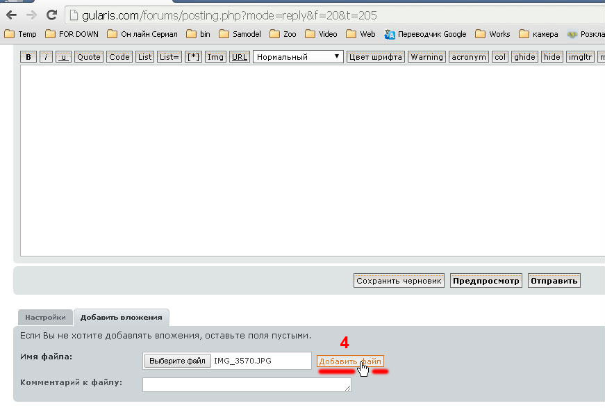 Прикрепленные к сообщению файлы размещаются в следующем порядке: первые - внизу, последние - вверху.