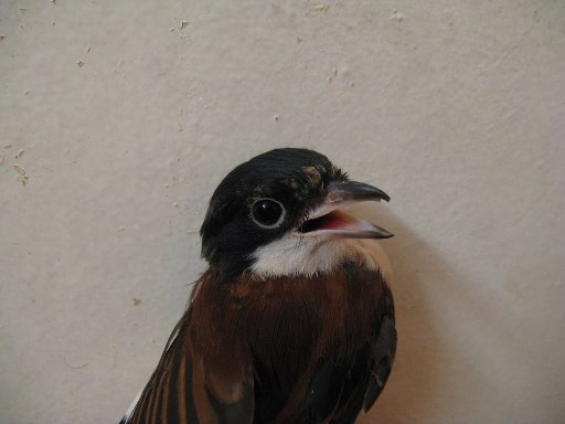 Уже приучен к сухим смесям, мясу и конечно насекомым. Пока могу отметить, что птица очень дикая, пугливая. Надеюсь,что перелиняв, окажется самцом южного подвида, и если повезет-хотелось бы послушать пение.