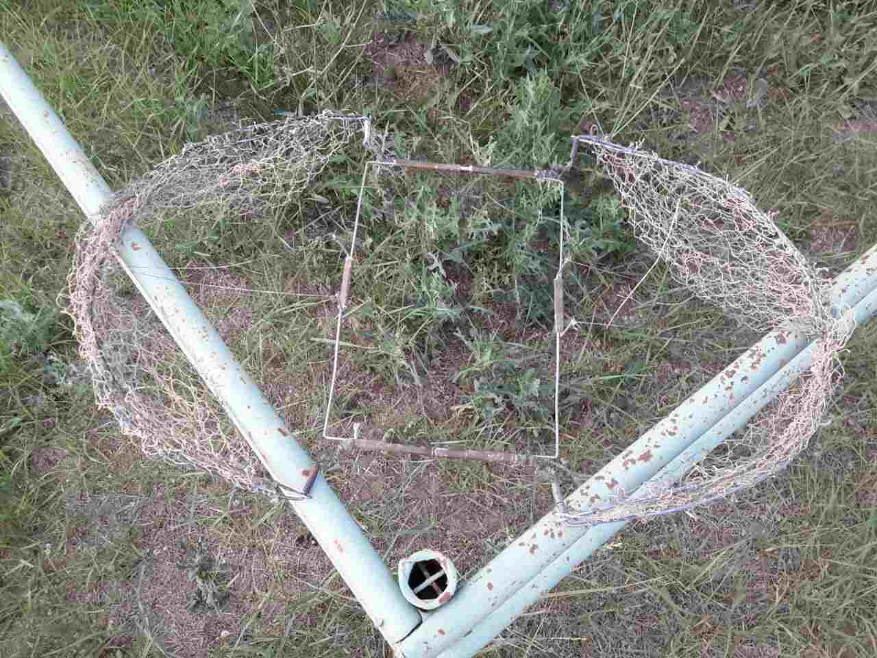 Да...прошу не обращать внимание на зеленые трубы. Это просто угол забора. Снасть специально поднята над землей,чтобы была видна ее прозрачная конструкция. На земле она практически не видима.