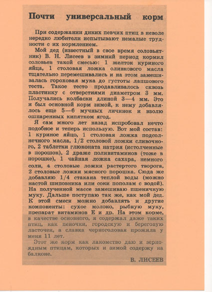 Всем желаю здравствовать. Всегда семена диких трав, т.е. разнотравье храню в морозилке. А на счёт пользы бобовых в рационе птиц, сохранил рецепт мешанки для насекомоядных с присутствием гороховой муки. Растительный белок всё-же!