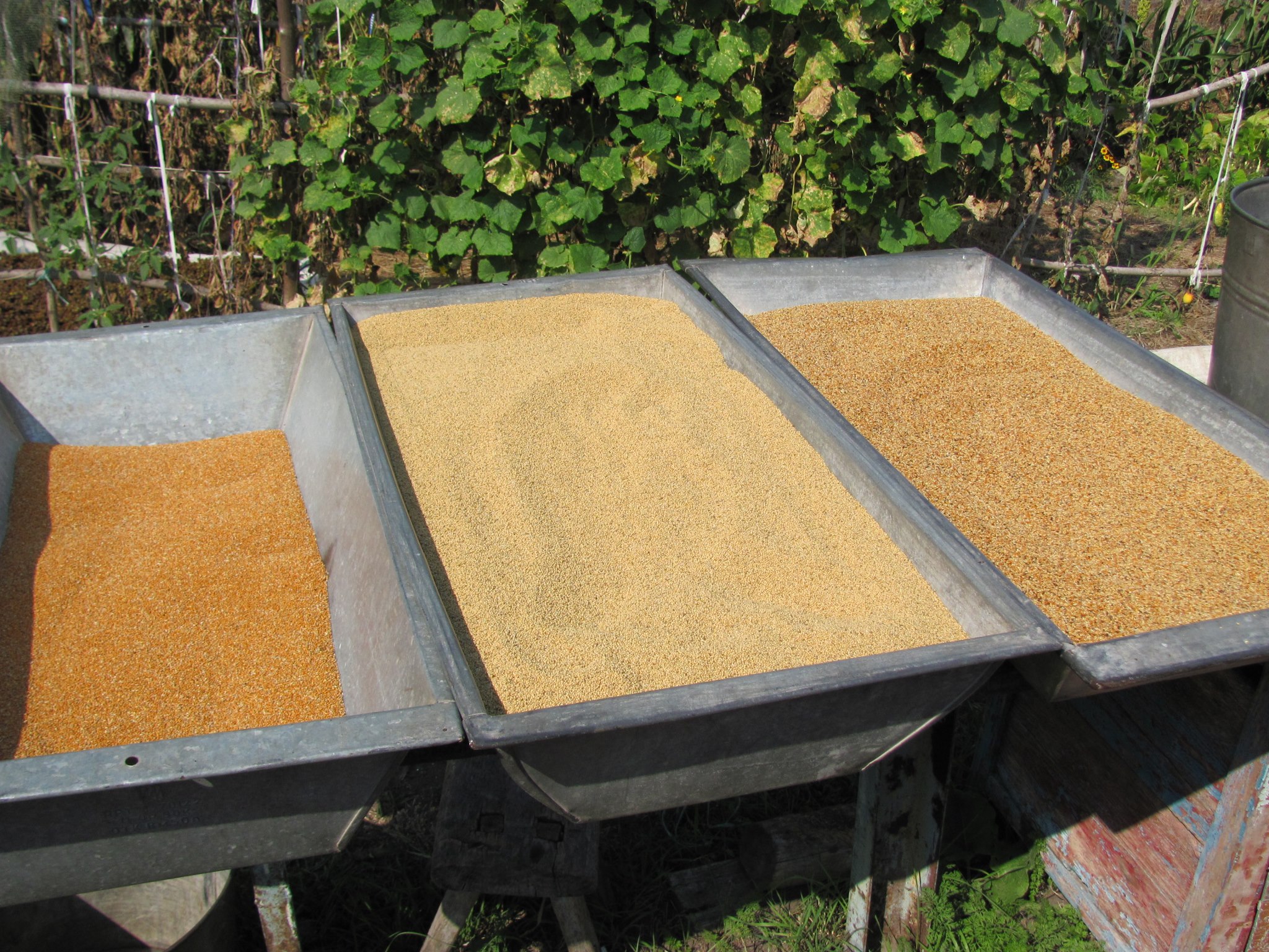 Зерно прослушиваю, просеиваю и провеиваю. Извините, никогда не мыл! К покупному зерну всегда отношусь более требовательно: нюхаю, пробую на вкус, пробную партию проверяю на всхожесть. Покупаю рапс, просо и канареечник, а из круп - цельная овсянка.