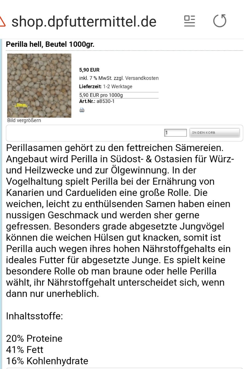 Вот видно давно этим зерном никто занимался, а периллу едят красные чижи в первую очередь в 49 смеси , может можно купить эту периллу, вот нашел еще корм дорогой 15 кг, так там периллы боле 50% - Корм для чижей Deli Nature 98