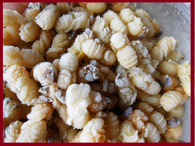 Полученный гомогенат сразу адсорбируют или применяют другой способ консервации. В фарфоровую ступку надо поместить одну часть гомогената, добавить шесть частей адсорбента (по массе), в качестве которого применять смесь лактозы и глюкозы (по 50%), и тщательно растереть. Адсорбированный на лактозно-глюкозной основе гомогенат трутневых личинок представляет собой порошок белого или слегка кремового цвета. Адсорбент придает гомогенату приятный вкус, не изменяя его физико-химических показателей, и позволяет продлить срок хранения при t = +4-8°C до 1 года.