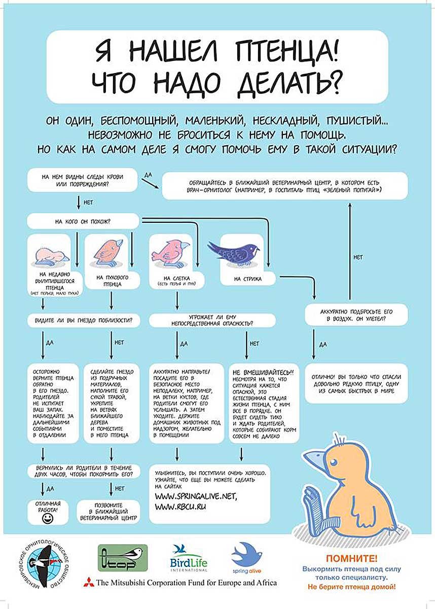 | Чтобы вы случайно не стали причиной гибели кладок и птенцов, просим вас в период гнездования, особенно в мае-июне, соблюдать в лесах и лесопарках следующие правила: – ходите только по основным, магистральным дорогам и тропам, НЕ СХОДИТЕ С НИХ, не заходите вглубь леса; – ВОДИТЕ СОБАК НА ПОВОДКЕ, не спускайте их в лесу с поводка; – если видите рядом с собой беспокоящуюся, тревожащуюся птицу – ОТОЙДИТЕ от этого места подальше, чтобы птица перестала волноваться; – если вы нашли гнездо – СДЕРЖИТЕ ЛЮБОПЫТСТВО, уйдите тихонько. Иначе хищникам будет проще найти его, а хозяева могут бросить кладку и даже птенцов; – птиц беспокоят ДЫМ И ШУМ, поэтому тщательно выбирайте место для мангала и откажитесь от громкой музыки; – увидев слётка – птичьего «недоросля», – ПРОЙДИТЕ МИМО. Не надо его «спасать», трогать, пытаться сфотографировать, подбирать и уносить домой. Родители не бросили его, они находятся рядом – хотя вы можете их и не видеть – и позаботятся о своём отпрыске. | [attachment=0]Листовка слетки_ин.jpg[/attachment] |