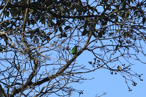Но вот встреча все таки состоялась. Это было в окрестностях Дехонга, на юго-западе провинции Юннань. Была поздняя осень, практически зима. Две птицы резвились в средней части относительно не высокого дерева. Были очень подвижны и пластичны. Красный цвет был насыщенно-тёмным. Говорят, он очень варьирует в зависимости от их места обитания. Мы облегченно вздохнули : "Ну вот! "-наивно предполагая что охота надолго не затянется.