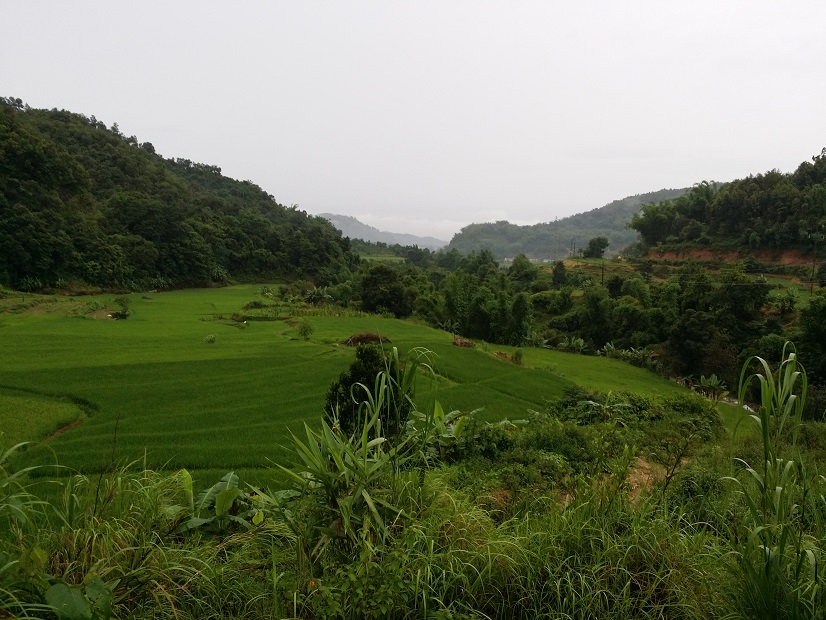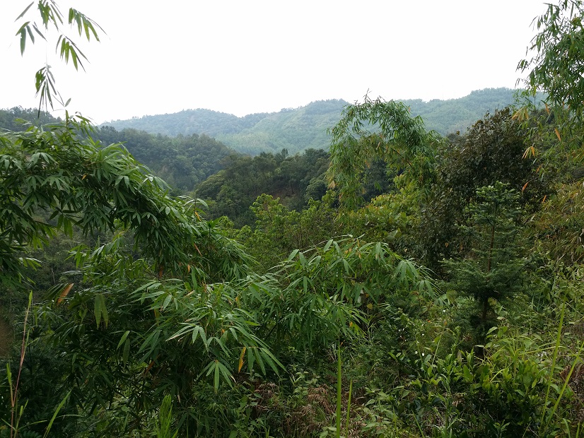 Высота была не большая - около 900 м. Лес с густым подлеском. Много зарослей кустарника.В долине просматривалось озеро приличных размеров. Примерно в метрах трёхстах нашли удобный переход на возвышенности. Несколько часов усиленной работы и вот узкая просека готова. Вырезали всё очень аккуратно, чтобы как можно меньше нарушать естественную обстановку. Еще пришлось немного поднапрячься, чтобы вырезать высокие бамбуковые стойки и затащить их наверх. Должен сказать, что стойки из бамбука -прекрасная вещь. Они - ровные , упругие, очень высокие. Паутина любого размера на них сидит и обслуживается идеально. В Азии это растение используется повсеместно. Из него делаются лестницы, заборы, строительные леса и многое многое другое. Но вот чтобы вырезать такую стойку и вытащить её из общего куста, макушки которой крепко сплетены в густой кроне - приходится попотеть, но оно того стоит. А климатические условия района добавляют к тому же "особый шарм" в этой работе.