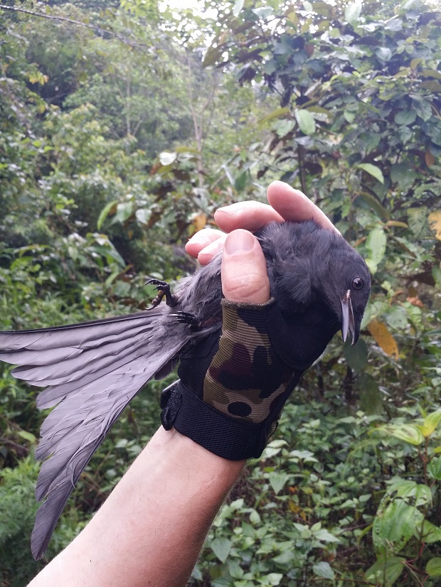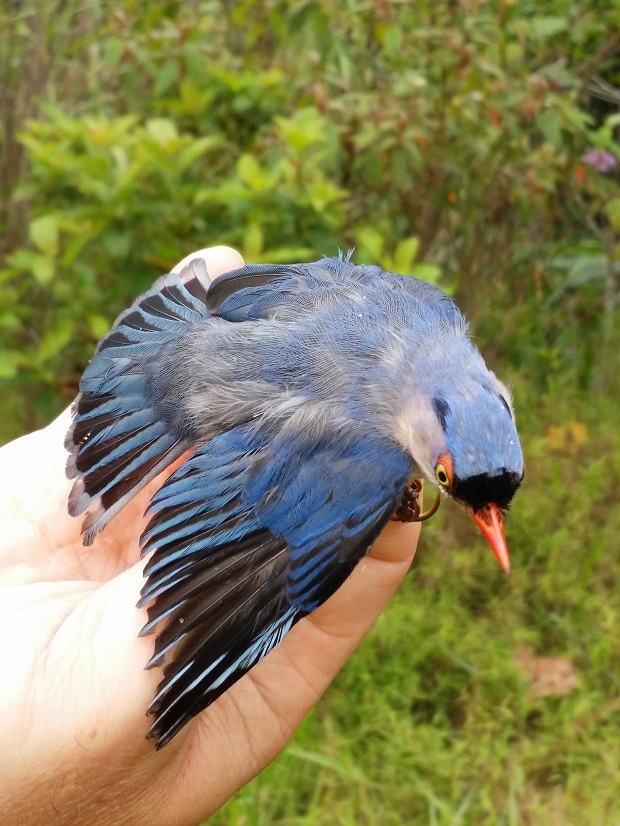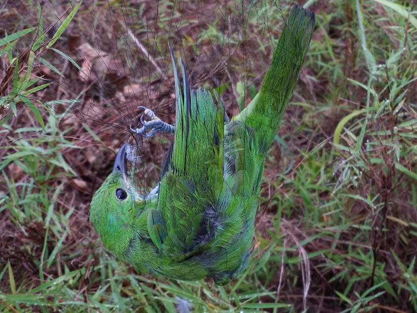 Кстати, в стаи сбились уже многие птицы . Очень впечатлила стайка Psarisomus dalhousiae, их было штук 25-30. Птицы яркие, динамичные, прошли средним ярусом и ушли в сопку. Также сгруппировались уже и красные личинкоеды. В купе с желтыми самками они очень оживляли лес. Мы их долго наблюдали со стороны, пока одна птица случайно не попалась в сеть. Другие тут же прекратили передвижения и начали летать вокруг сети. Через какое то время только одна самка осталась на свободе, долго вертелась с призывными криками. Уверен, она поймалась бы тоже. Но когда мы начали после фотосъемки выпускать пойманных птиц, она улетела вместе с ними.