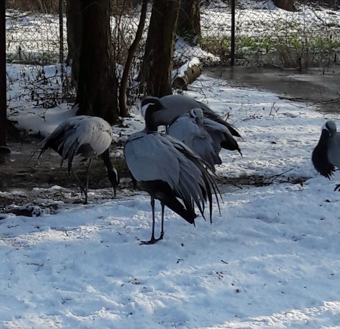 Попугаи в открытых вольерах и снег...Не холодно им...?