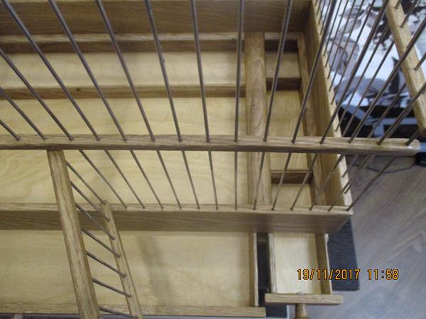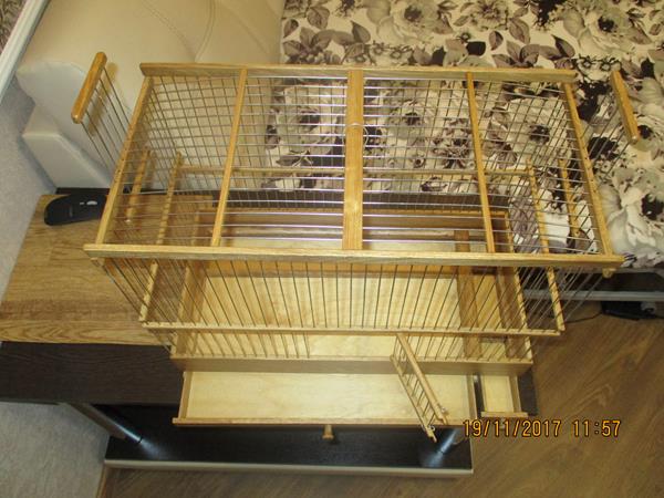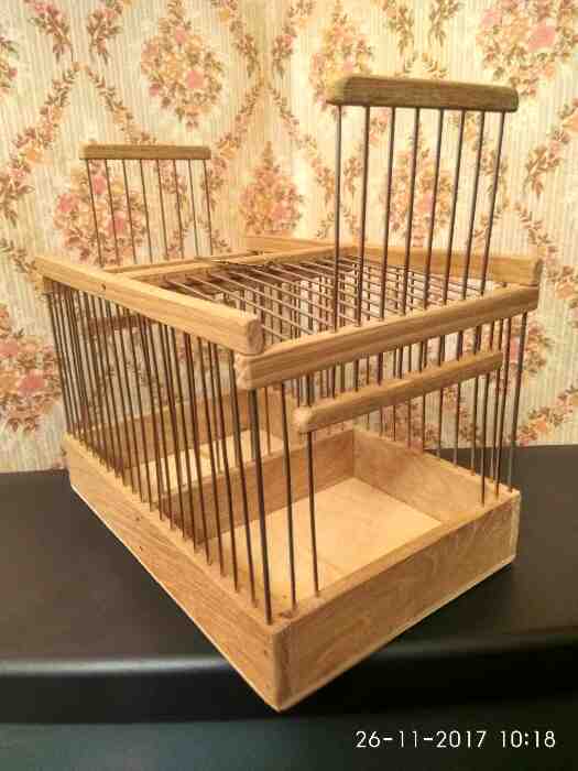 Вот смастерил клетку в США город Бостон. Размер клетки Д-500 мм Ш-250мм В-390мм вместе с ножками. Дверцы три, одна распашная с фасада в нижнем ярусе, и две по бокам подъемные в верхнем ярусе. Высота нижнего борта 80мм. Дерево Дуб. Спицы нержавейка диаметром 1.6мм.