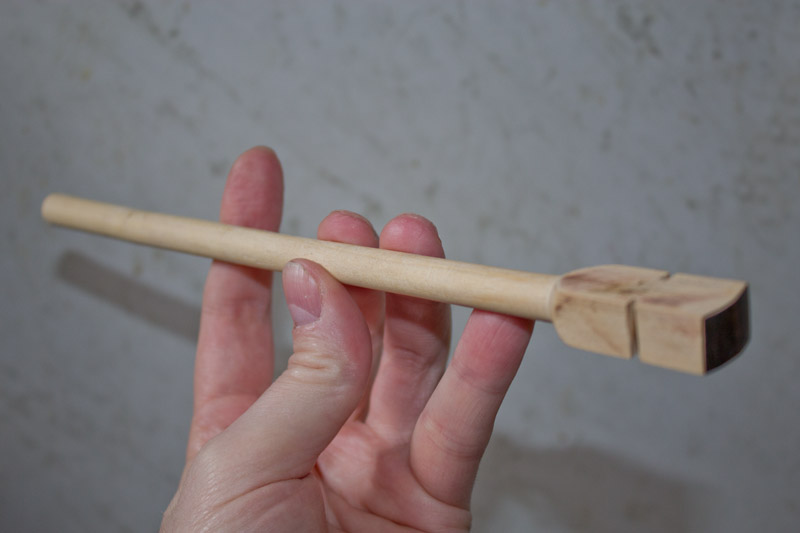Приклеиваю деревянную шайбу. После высыхания клея кончик деревяшки окунаю в лак, но это уже по желанию.