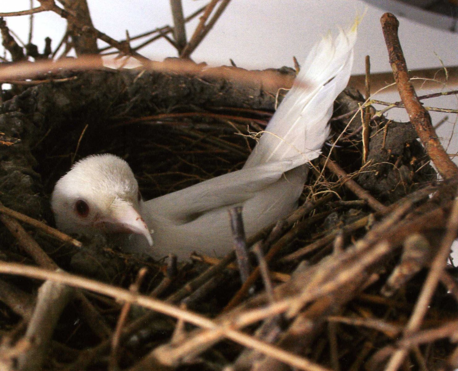 Тем не менее старые гнезда, которые были немного разрушены, полностью достроены не были. Однажды утром я не обнаружил в вольере альбиноса. Оказалось, что самка плотно сидела в недостроенном гнезде. Я сразу покинул вольер, чтобы не беспокоить пару.