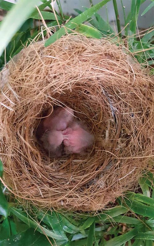 Из двух отложенных яиц птенцы вылупились через четырнадцать дней. Т.к. вольер был оборудован камерой, была возможность наблюдать за поведением птиц, не беспокоя их. Сразу, после вылупления был скорректирован корм - уменьшили его количество, но увеличили частоту кормления… специально под насекомых. Также, старались предлагать живой корм в разных частях вольера, чтобы родители птиц были заняты его поиском. Для этого в основном использовали микросверчков, которых периодически подбрасывали в вольер.
