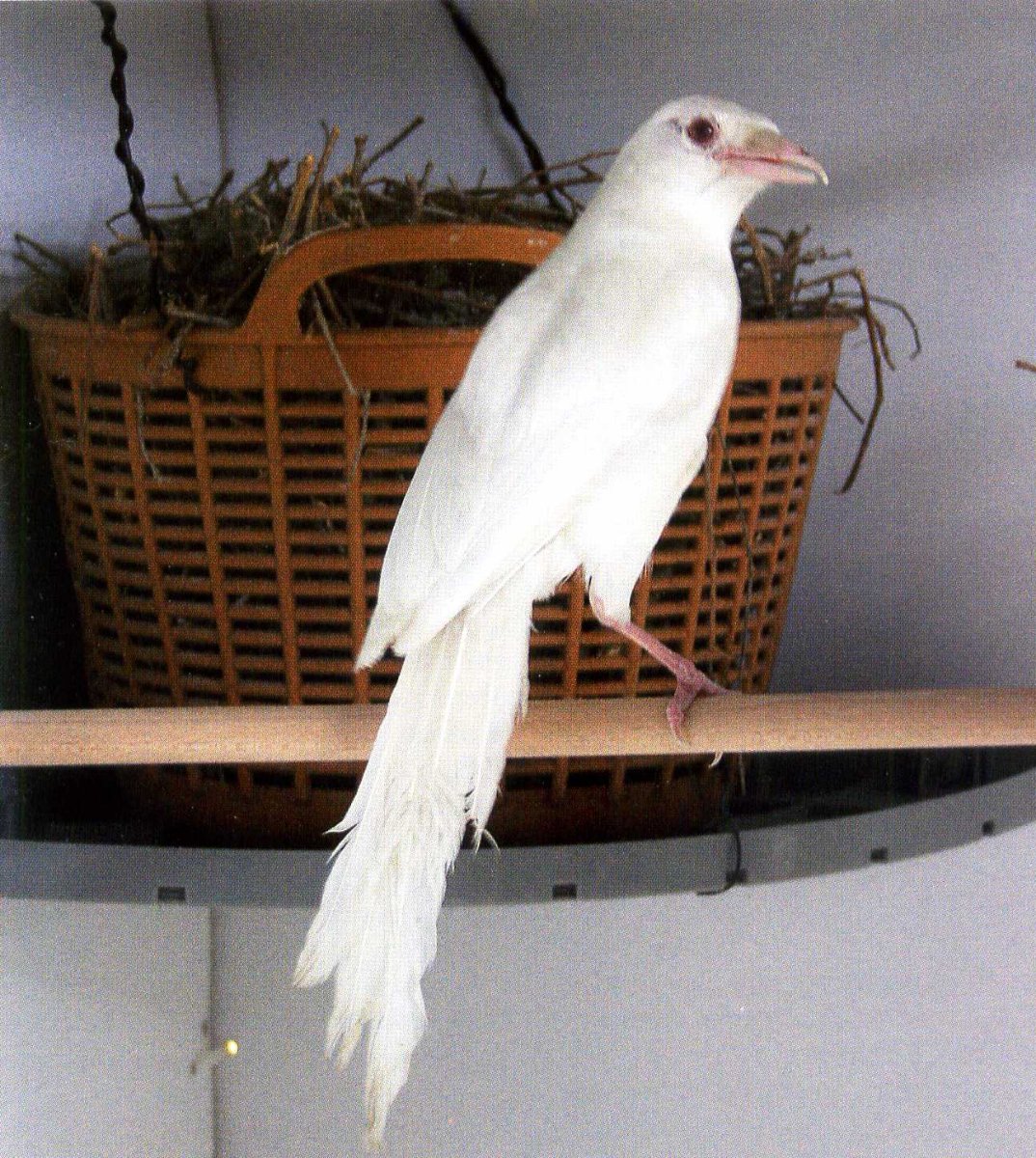Через некоторое время попалась мне статья французского заводчика Жана-Мишель Эйфорта о попытке разведения сорок. Пара была примечательна тем, что самка в ней была альбиносом. Сам заводчик более известен как любитель вьюрковых птиц, но не устоял перед обаянием сорок.
