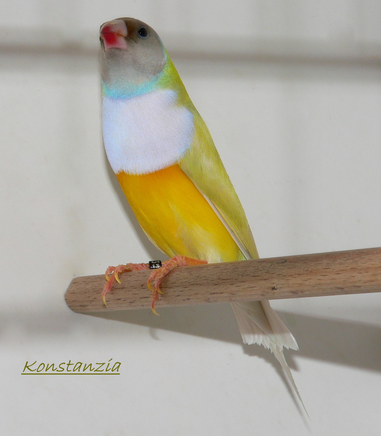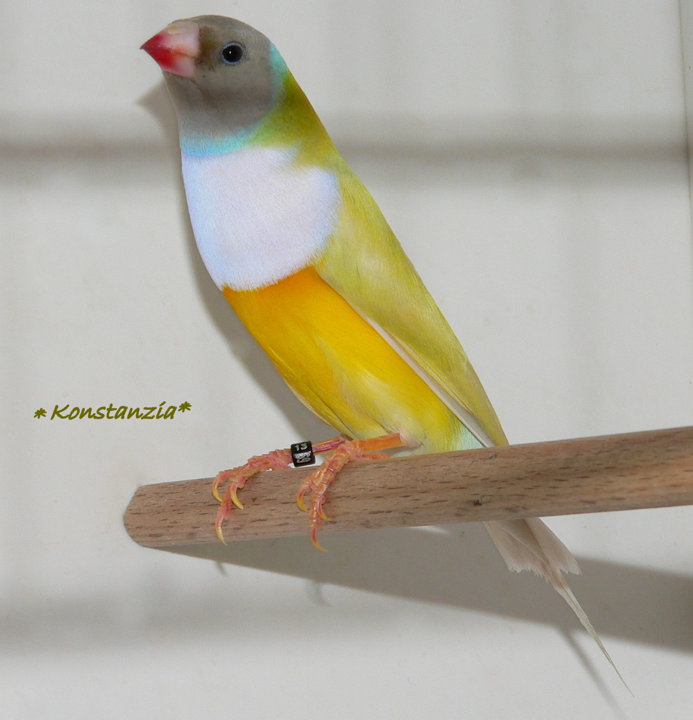 Cамец получен от зеленого белогрудого оранжеголового , щепного на синего самца и от серебристой белогрудой черноголовой самочки ( другими словами - чисто белой). Судя по оперению птенцов - будут они однозначно желтыми...а вот какими желтыми :? - разброс по генетике у них там большой, посмотрим чуть попозже. Сегодня малявки вылетели из гнезда, один из них покрупнее и поголовастее - наверняка самчик, другой и окраской побледнее и помельче ,и форма головы иная, думаю будет самочкой ))). Ну, а там - "Who is who :?: " покажет время ))).