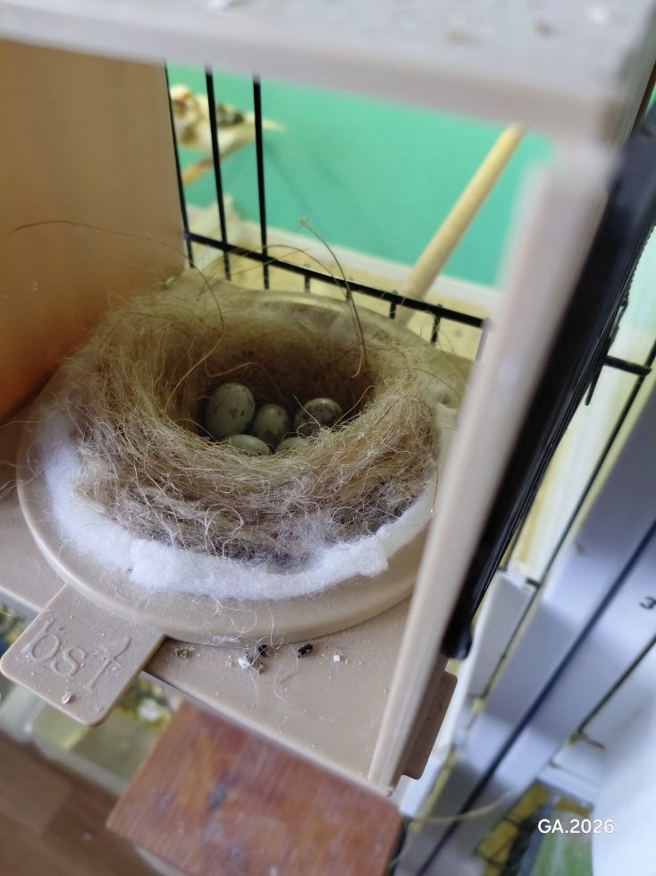 Кстати самки и в первом и во втором поколении...фригидные что ли. Ни гнездом,ни ватой ни сухой травой ни разу не заинтересовались.Весь смысл жизни у них в - искупаться и пожрать :)