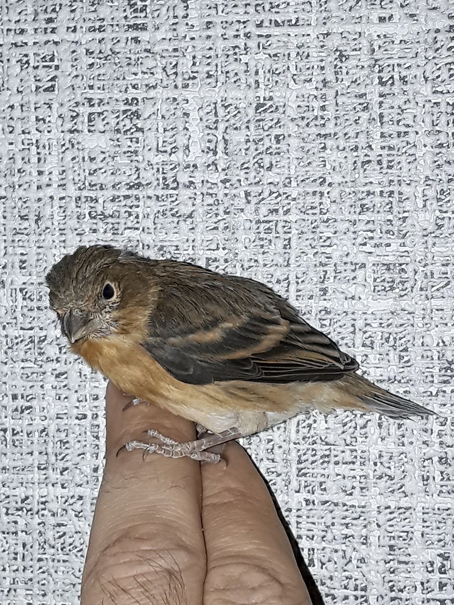 Очень этот птенец похож на птенца красного чижа мужского пола, молоденький самец красного чижа несколько месяцев набирает свой красный цвет, а свистеть молоденький чижик начинает уже в 2 месяца. Интересно какой цвет будет у этой птицы через 3 месяца.