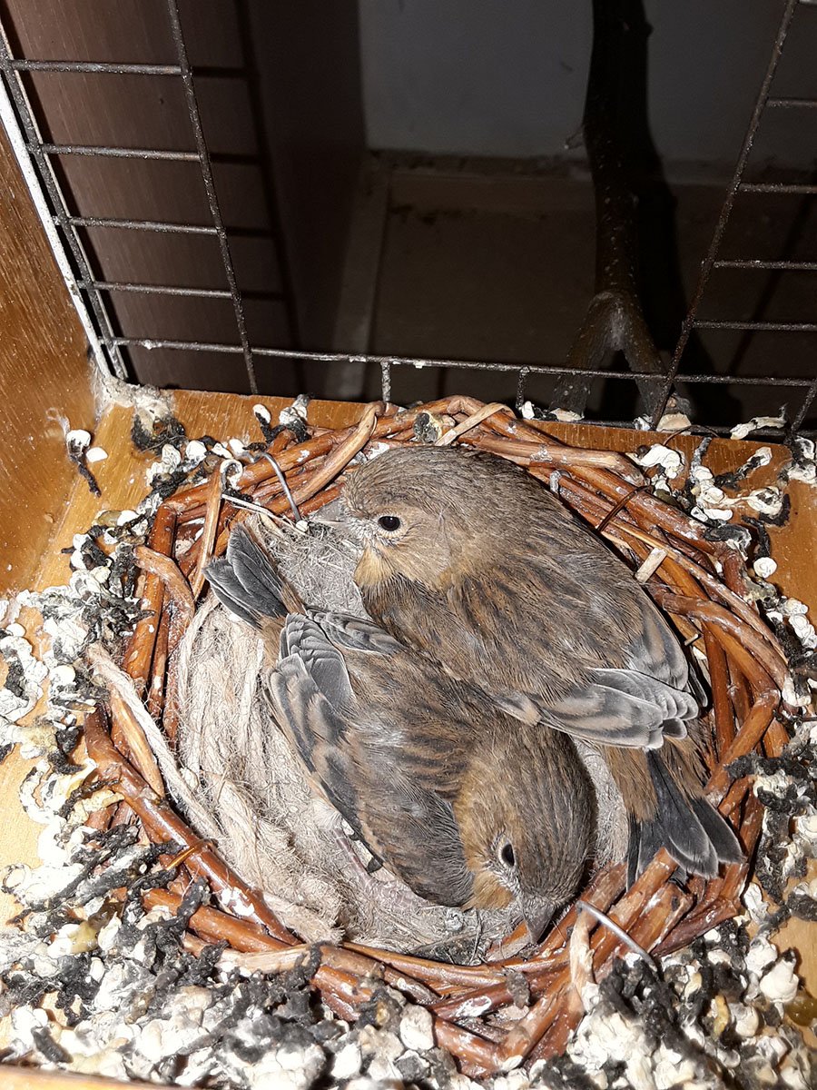 Покинувшие гнездо слётки канареек совершают беспорядочные полеты по клетке, как увальни постоянно валятся с жердочек или стремятся вернуться в гнездо, а эти довольно быстро сориентировались и передвигаются вполне осмысленно, преследуя своих кормильцев.