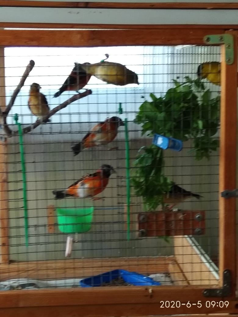 Сезон разведения огненных чижей уже закончен. Последний выводок февраль 2020г. Если делать всё правильно то проблем с разведением и кормлением в период выкармливанием птенцов они не доставляют.