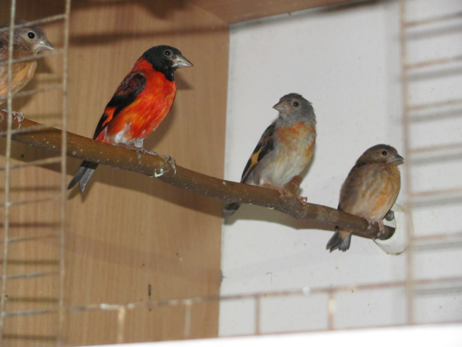 Экзоты порадовали. С ноября 2013 по март 2014 потомство дали три пары огненных чижей. Положительным моментом считаю то, что весь период гнездования, в комнате стояла постоянная температура воздуха: +25-26С. В летний период разведения, когда происходили значительные колебания температур не только по дням, но и в одних сутках - результат был ниже.