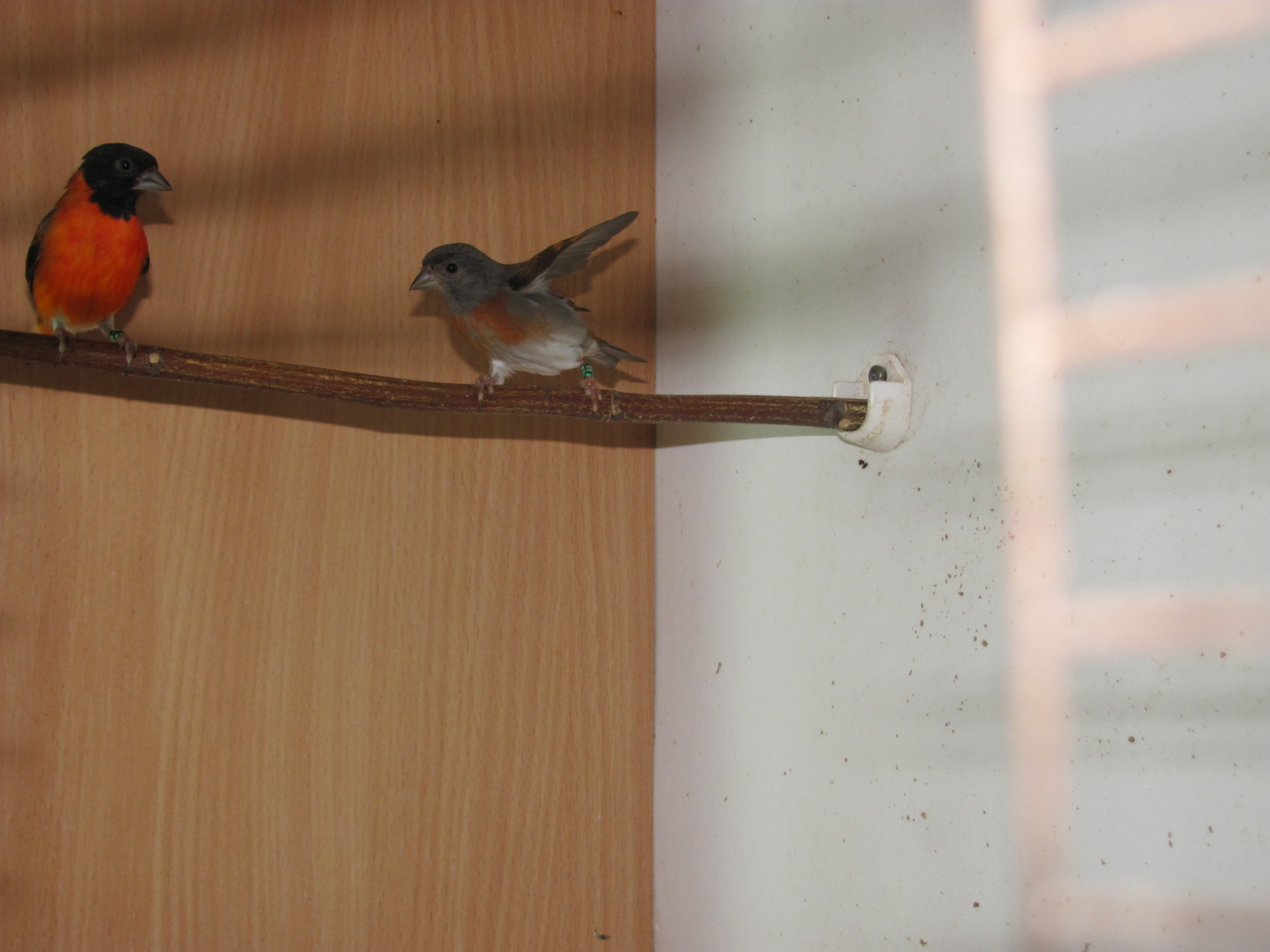 Сейчас загнездились мозамбикские вьюрки. Самца попеременно подпускаю к двум самкам. Пока скромно... сказываются низкая температура воздуха в помещении: +15-17С и невозможность поддерживать стабильно длину светового дня из-за частых отключений. Летом размножаться категорически отказались, а самец даже не подавал голоса.
