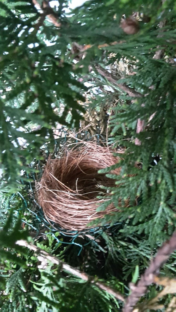Это гнездо рыжей овсянки. Первый и последний раз, когда рыжая приняла такой каркас. В основном они не реагируют ни на какие формы гнезд. Гнездо из кокоса и немного травинки. Ни какой подстилки.