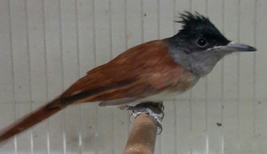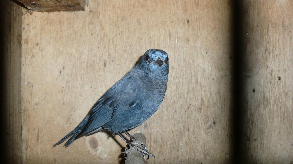 Синий каменный дрозд в одном из просторных уличных садков местного любителя Sergo. Снимок мой.