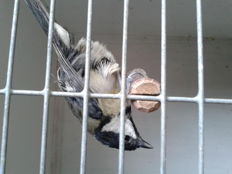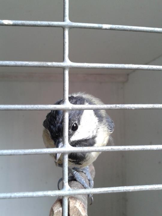 Есть у меня приятель Владимир. На днях он водил своего стаффордшира в ветклинику. Случайно обратил внимание на большую синицу в клетке. Ему сказали, что синичка-выкормыш. Молодые люди подобрали его в прошлом году. Птица жила в небольшой железной клетушке для попугаев. В этом году с пополнением семейства, синичёнка решили пристроить. Птичка рактически ручная, снимал в упор. Тем временем он крутился рядом, выпрашивая лакомство и поклёвывал мои пальцы. Движения спокойные, захотелось взять его себе. Товарищ сказал, что на днях его прийдут проведывать.