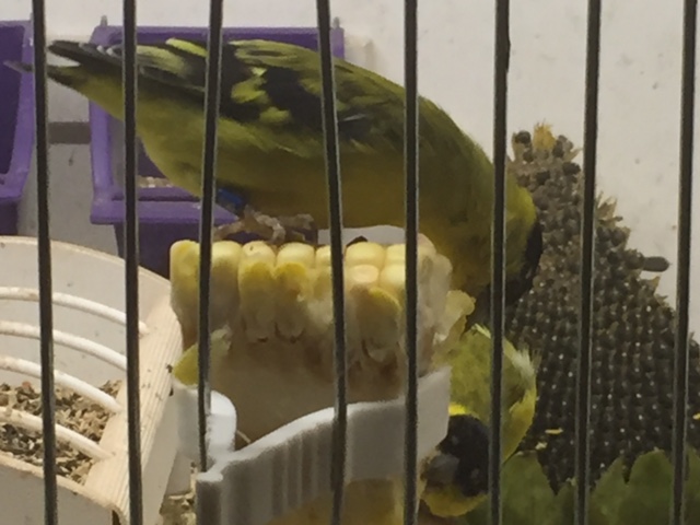 Все чижи, за исключением мексиканцев (еще не приучены) обожают молодую кукурузу. на фото молодежь Ярелла