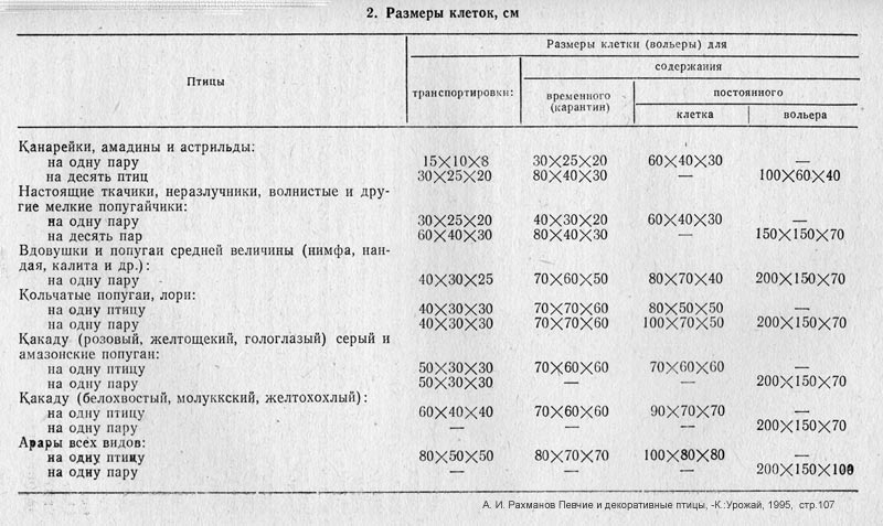Первой моей книгой о птицах, была "Певчие птицы" Г.Ф. Романишина на украинском языке, изданная в 1973 году. Достаточно содержательна и оформлена по всем стандартам того периода. Автор указывает три основных размера клеток.Сергей Чернов писал(а): ↑26 дек 2017, 15:40Напрашивается вопрос: может вместо кучи цифр и поиска отличий между ними ввести какие-то классы для обозначения размеров клеток для той или иной группы птиц или целей использования клеток?
