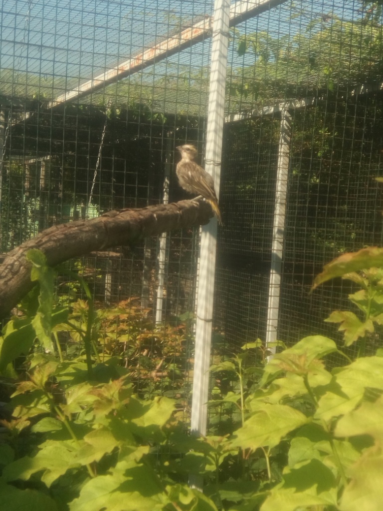Птенцы вылетели из гнезда очень рано, как только чуть оперились и где-то 5-6 дней сидели на земле по уголкам. По вольеру ходить было страшно, как бы не наступить. Сейчас уже взлетели на ветки. С момента вылупления это настоящие партизаны - всегда молчат и очень незаметно себя ведут.