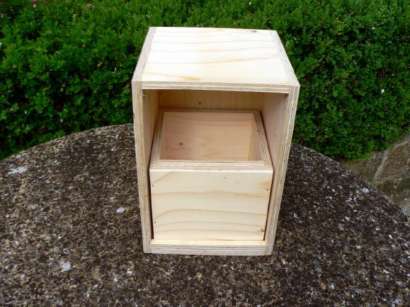 Очень практичный вид гнезд, используемый при разведении шам. Её выдвижная часть удобна для контроля кладки и выводка. Такая модель легка в изготовлении ,как вариант - изготавливается из многослойной фанеры. Успешно применяется разводчиками Сингапура. Размер гнезда 15х15х30 см (длина,ширина,высота).
