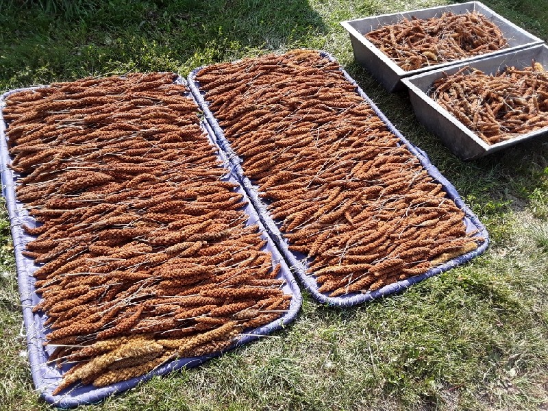 В этом году, все буквально горит и сохнет под солнцем. Подошла пора резать мелкие семки-немки. Сенегальское просо окончательно высохло и готово к транспортировке.