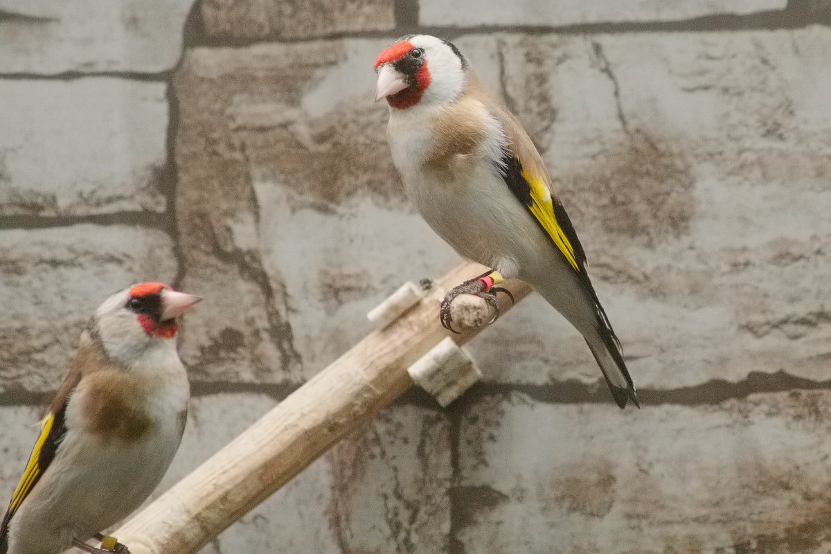 У меня есть "неправильные" щеглы: крупный с темно-коричневой спиной и грудью, и мелкая светлая самка.