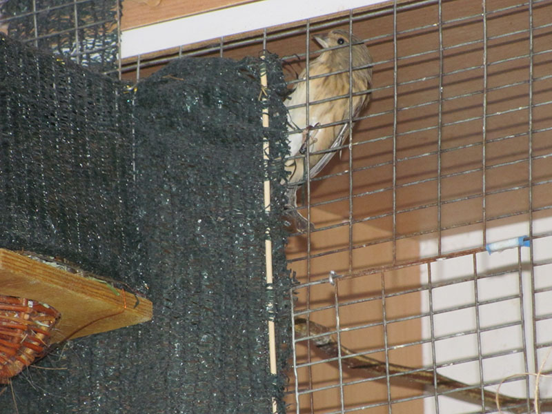 При чистке сада, на заборе заставленном снопами сенегальского проса, было обнаружено гнездо коноплянок... кладка была еще не полной, состояла только из 3-х яиц, и поэтому, была надежда, что наседка вернется. Несмотря на максимально возможное восстановление места гнездования, птицы не вернулись не на следующий день, ни через день. При транспортировке одно яйцо было повреждено, а из оставшихся, вывелись два птенца. Один слеток, как только начал пробовать голос, был передан другому любителю, а птенец оказавшийся самкой, был оставлен для дальнейшего разведения. В пару был выбран самец, пойманный поздней осенью.